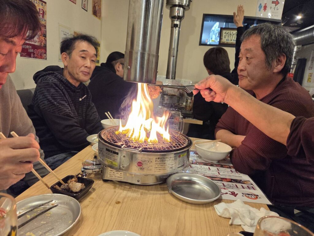 仕事終わりということもあり、最初は落ち着いたスタートでしたが、焼肉が運ばれてくると一気に賑やかに。